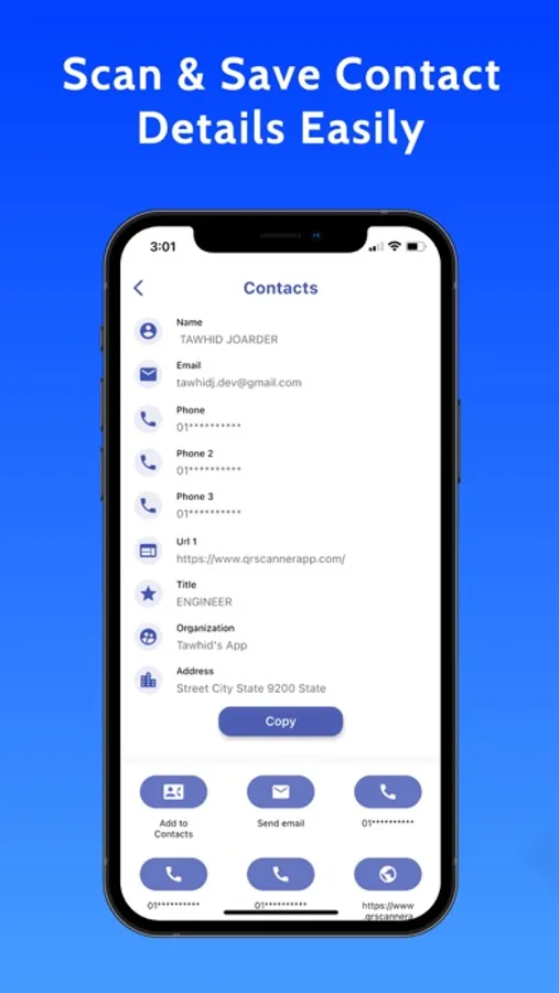 Scan QR Code or any barcode to get additional information including results from Amazon, eBay, and Google! Whether you are a customer seeking the help of a QR code scanner to compare product prices and receive all the retail information or you are a routine user looking for a QR Code generator and barcode creator to save or view contact details, this app is the perfect pick for you. With this Quick Response Code generator and scanner app, you can keep a log of all the scanned and created codes. Save time and effort involved in QR code scanning or other purposes.