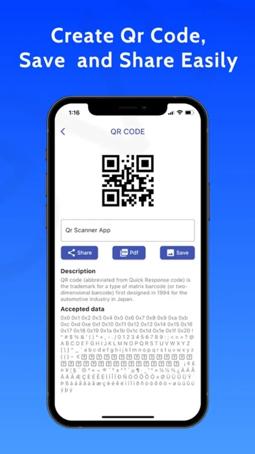 No need to download multiple apps to create and save QR Codes. With this product barcode scanner and QR Code generator, you can create, save and share as many Quick response Code and Barcode entries as you like. Scan QR and share any code in the form of a PDF. Enable your phone’s camera to access the QR Code scanner app, so you can directly fetch information from any QR Code infront of you.