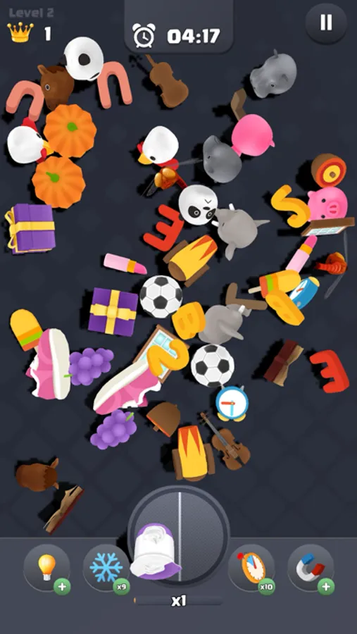 You need to match objects on the ground and pop them all! When you clear a level, you will find new objects to pair.