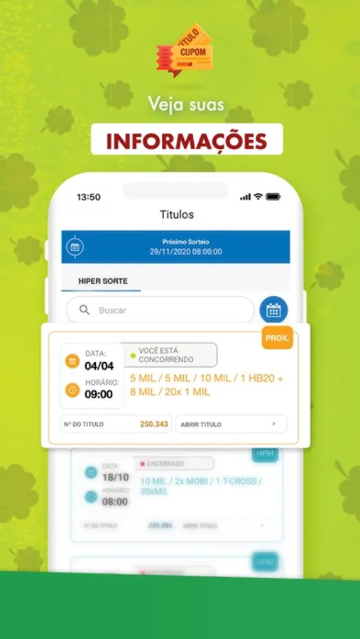 Notificações exclusivas: Informações em 1ª mão sobre os títulos, sorteios, premiações e resultados;