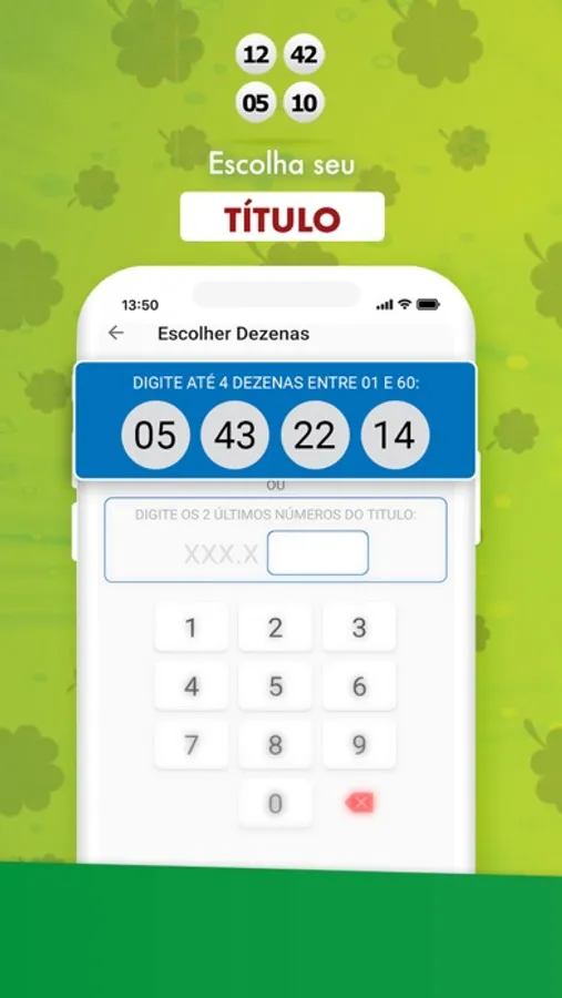 Dezenas no App: Sabe aquele número da sorte? Use ele aqui no app pra escolher as dezenas (nas compras com cartão de crédito);