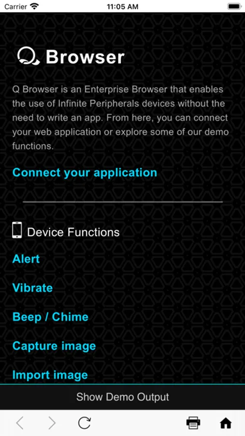QBrowser is an enterprise-grade web browser that enables websites and web applications to interact with Infinite Peripherals’ hardware devices. By utilizing our JavaScript API’s, you can integrate scanning, MSR, printing, RFID and more with your web applications.