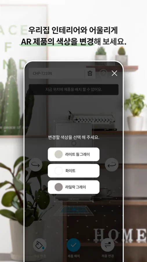 증강현실 기능을 활용하여 가상으로 제품을 둘러보고 배치하여 기능을 체험 해보는 서비스입니다.