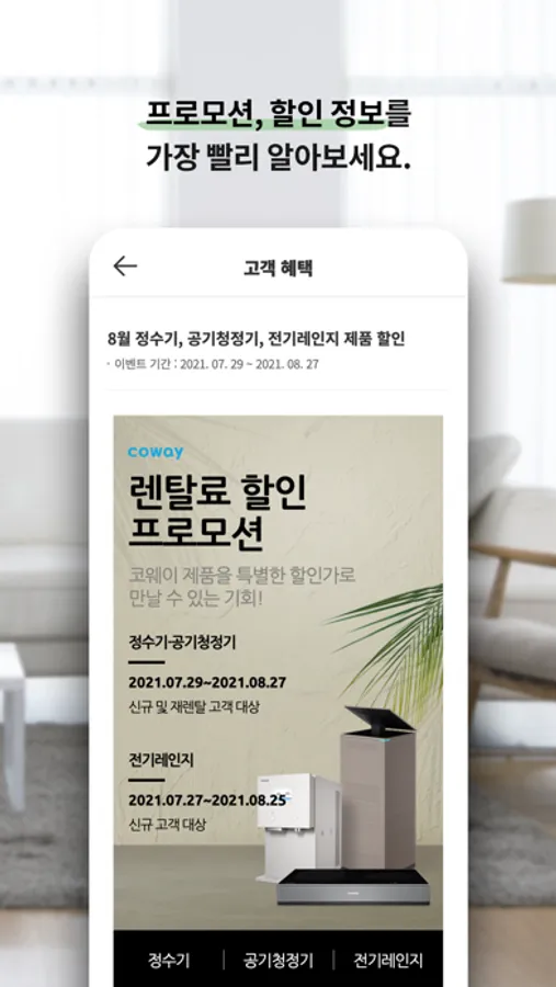 4. 라이프 스타일 별로 코웨이가 제시하는 꿀팁 보기