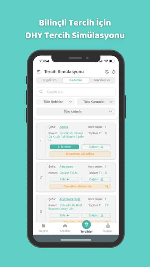 - DHY tercihlerinizi çok daha güvenli şekilde yapmanızı sağlayan 'DHY Tercih Simülasyonu' modülü
