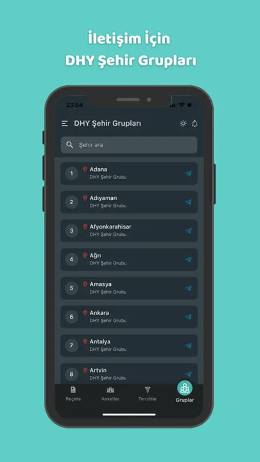 - DHY tercih sürecinde iletişimin sağlanması için il tercih grupları