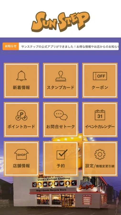 「サンステップ」の公式アプリ!アプリ会員様限定の特典をご用意しております。