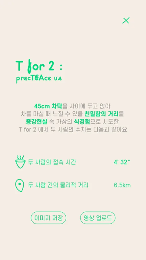 T for 2 : pracTEAce us 는 오프라인 실험을 통해 확인된 결과들을 바탕으로 가상공간에서 '차 마시기'를 설계하고 실험한다. 전 과정은 차를 매개로 일어나는 만남을 통해 사람과 사람 사이에서 발생하는 감각적 경험의 관계를 기록하고 공유하고자 한다.