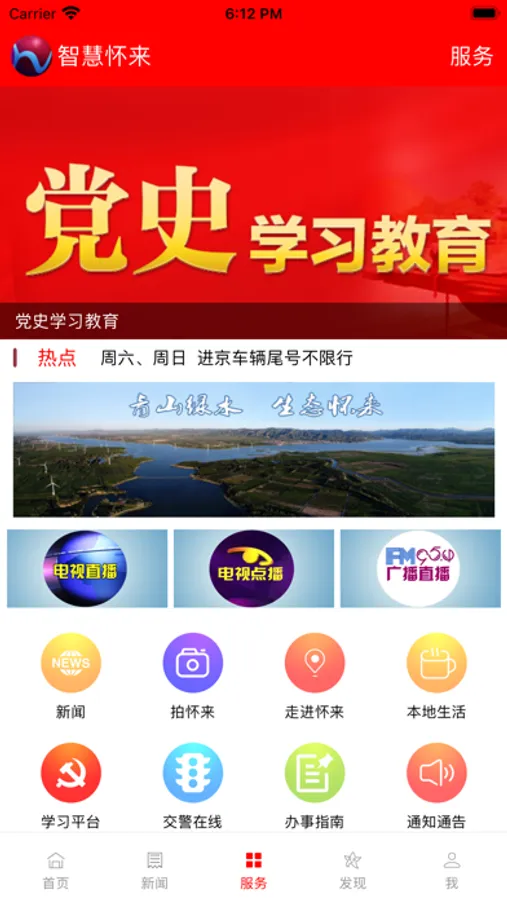 《智慧怀来》是怀来县广播电视台推出的一款官方综合性智能服务移动终端。内容涵盖电视广播直播、视频点播、本地政务通告、新闻资讯、发票摇奖、市政交通、学习教育、办事指南、旅游美食、文明监督等在线服务功能。可在线收听收看广播电视直播、节目点播,随时了解怀来新闻和国内外时事及社会资讯,具有机动车违章、快递、列车时刻、航班动态等查询功能,是集吃住行游购娱等于一体的便民综合服务平台。