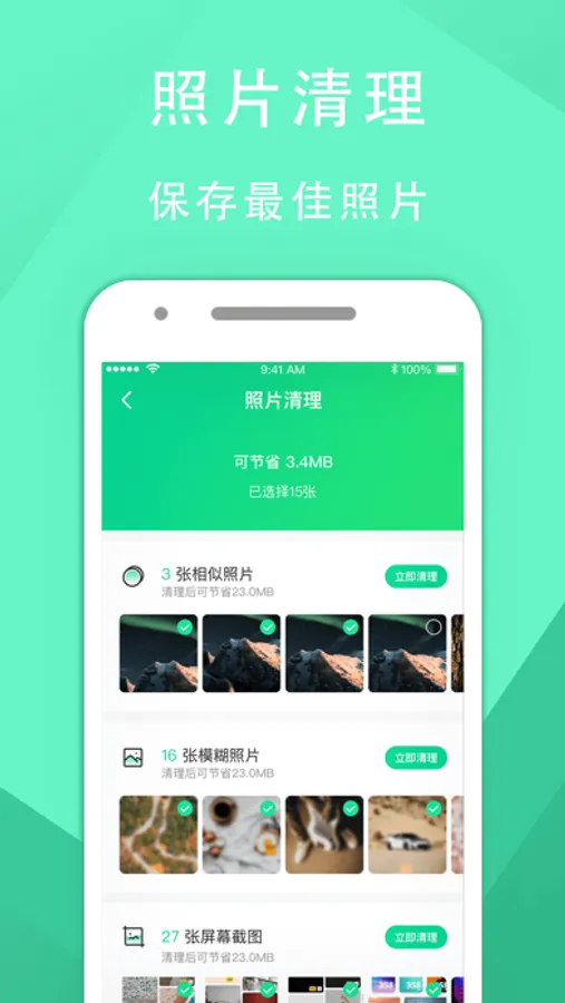 【图片管理】 智能识别相似图片/模糊图片/截屏/大图片,一键删除,释放内存。