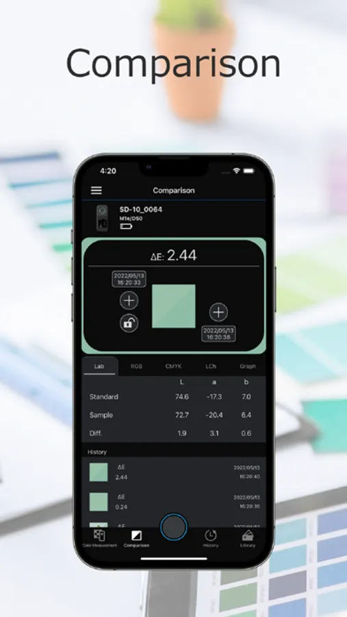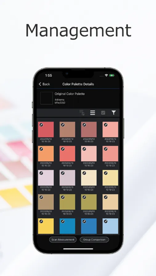- Add a variety of information (favorites, location, photos, and notes) to measured colors.
