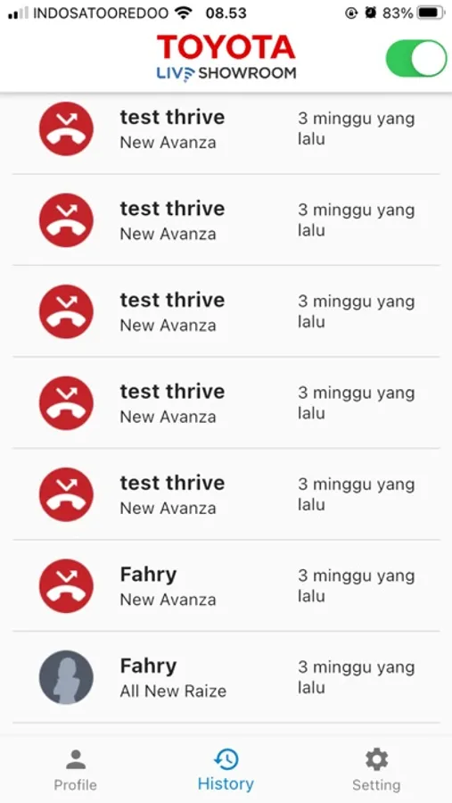 Gunakan smartphone Anda untuk melayani panggilan dari pelanggan. Toyota Live Showroom secara default memakai fungsi mute/unmute, front camera dan microphone yang tersedia di perangkat Anda.