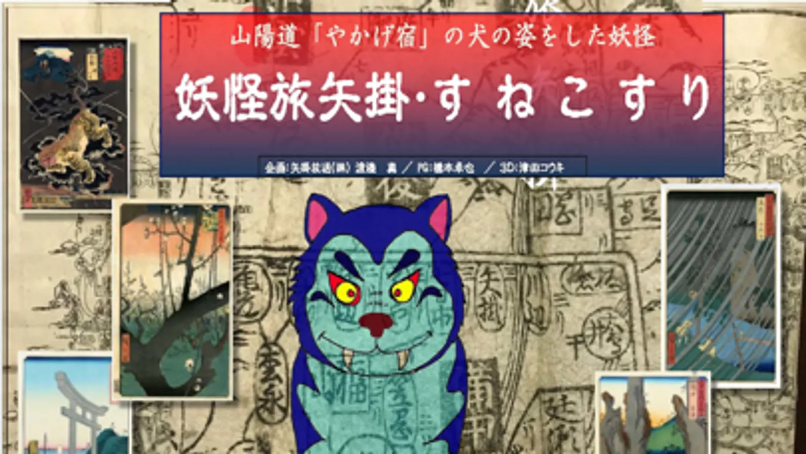2、矢掛町に行き、妖怪が出ると言う噂の場所に行き、立ち止まって周囲の安全を確認して、アプリをスタートさせ、お店に掲示してある