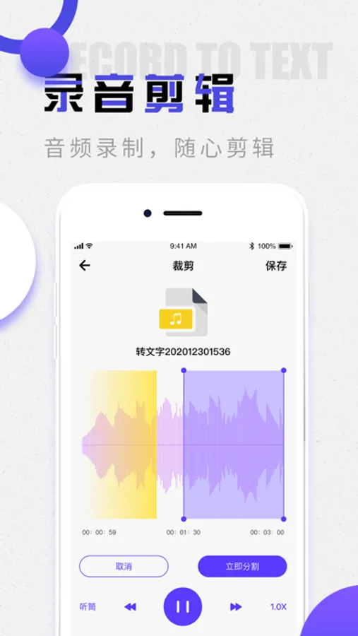 《录音机-录音转文字助手》是一款支持实时录音和录音转文字的专业手机录音软件,无论是课程、会议、采访,还是记录点滴灵感,都能满足您的需求。