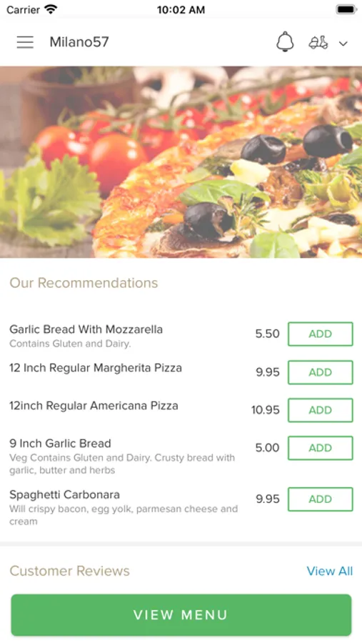 Thank you for visiting Milano 57 in Deepcut. We hope you enjoy our online ordering app and your food.