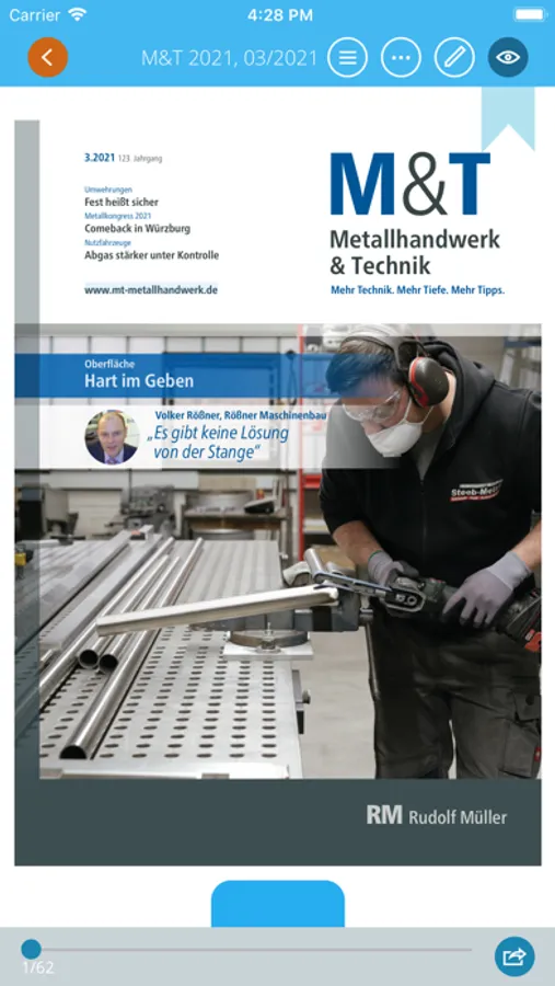 Die M&T-App hilft Ihnen mit Fach-Informationen, die Sie sofort in die Praxis umsetzen können, bei der Planung und Ausführung von allen Arbeiten des Metallhandwerks. M&T informiert Sie regelmäßig über neue Normen und Richtlinienänderungen sowie deren Auswirkungen auf die tägliche Arbeit. Die Fachbeiträge beschreiben die Vor- und Nachteile von neuen Verfahren für Ihre tägliche Arbeit. Abbildungen, Infokästen und Checklisten helfen Ihnen beim Anwenden der vorgestellten Techniken und Produkte. M&T Metallhandwerk & Technik ist das Organ des Bundesverbandes Metall.