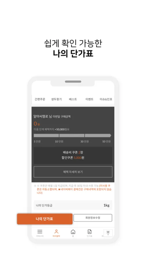 모든 사업자 분들에게 60kg 단가를 부여해 드리며, 로그인만 하시면 편리하게 '나의 단가'를 확인하실 수 있습니다!