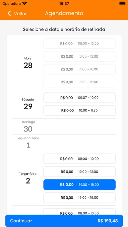4 - Selecione o horário de entrega ou retirada.