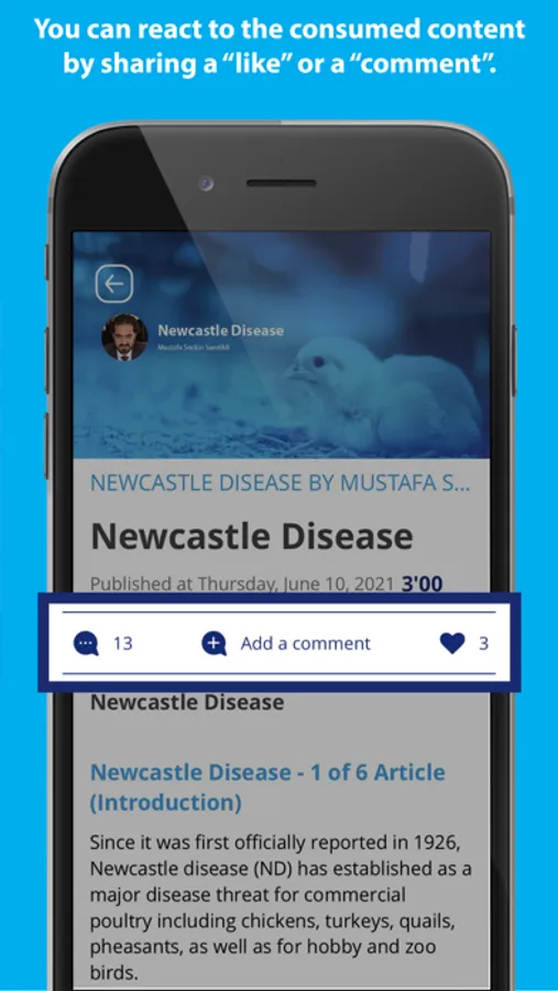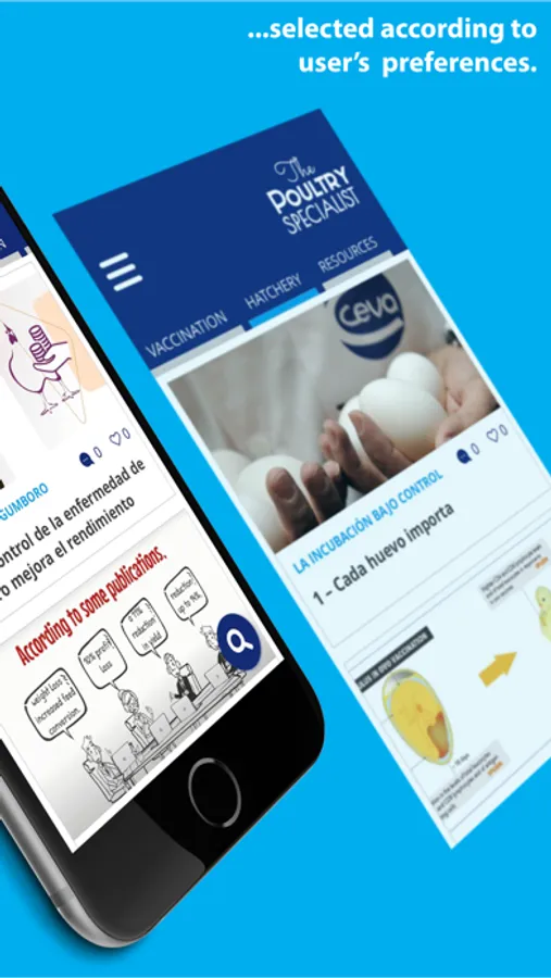 The app has been designed to deliver selected & customized, content specifically developed for poultry professionals, including veterinarians, poultry business owners, hatchery or live production managers, poultry specialists, or scientific staff members, allowing them to gain practical, fact-based insights and build knowledge through in-app shared content.