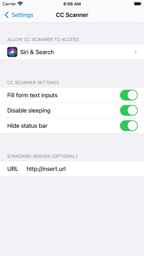 An URL to a server set up by CompControl should be configured in iOS-Settings or within the startwindow of this app. A simplified browser is used to navigate and scan.