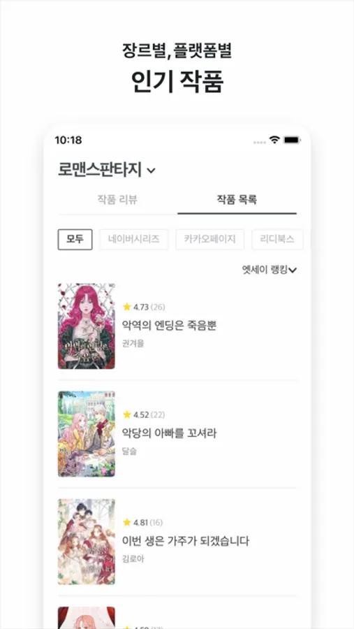 여러 플랫폼의 웹소설 리뷰가 장르별로 분류되어 있어요. 판타지, 로맨스, 로맨스판타지 등 좋아하는 장르에 대한 리뷰를 확인하고, 취향에 맞는 작품을 찾아요!