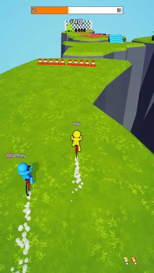 Ride and jump over the cliffs! Be the first to get to the finish line!