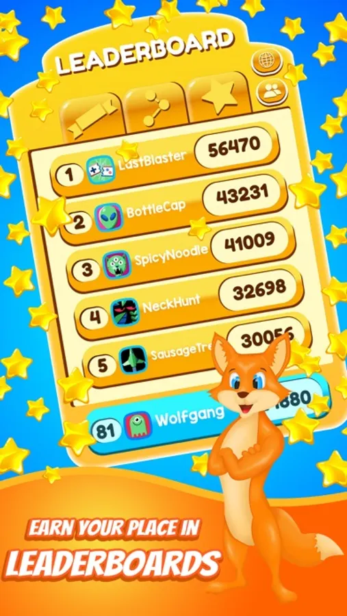 Make the highest score to reach 1st place among all players and friends! Don't worry if you run out of life or gold, your friends are always with you, you can immediately ask a friend for life or gold.