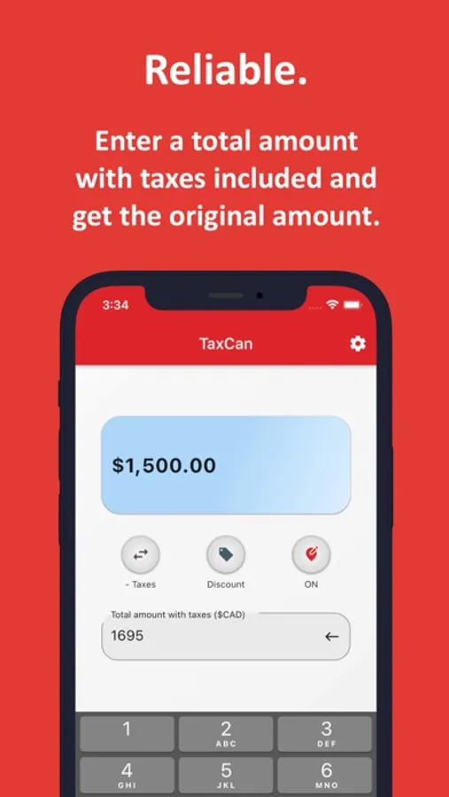 Just enter an amount to instantly get the calculated total with or without taxes.