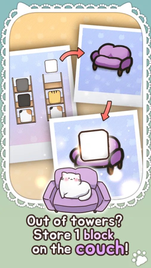 • When a cat tower is completed, the cat blocks will wake up into a cute cat.