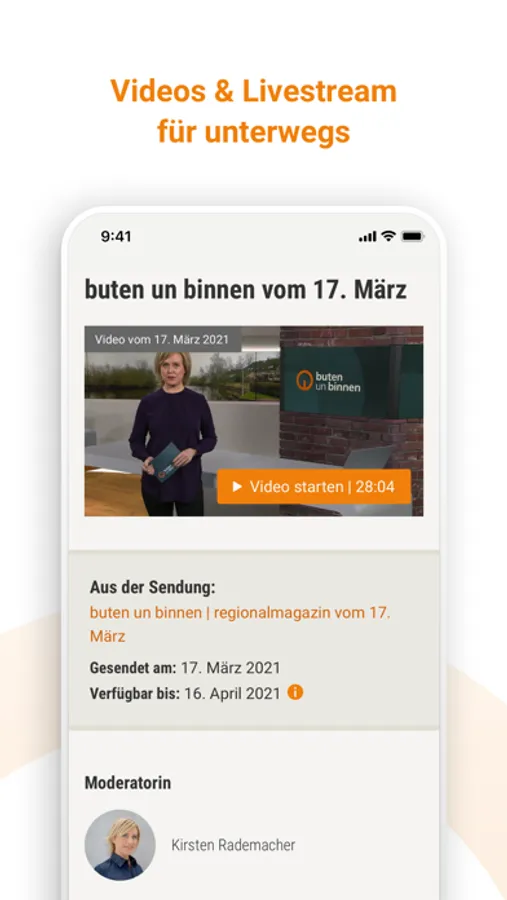 Erfahren Sie regionale Geschichten, Themen und Nachrichten einfach und authentisch erklärt. Verfolgen Sie den Livestream oder sehen Sie die aktuellsten buten-un-binnen-Fernsehsendungen on demand. Mit der buten-un-binnen-App können Sie diese immer und überall abrufen.