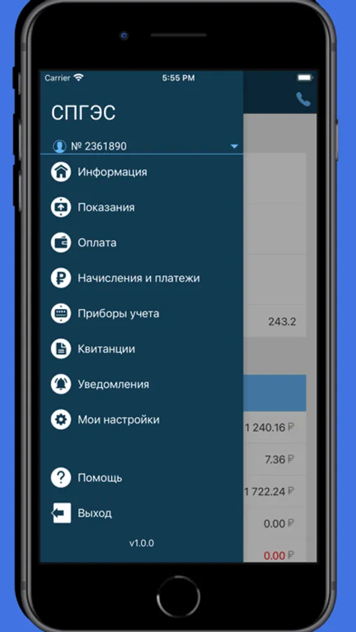 В нашем приложении, доступны все функции WEB-версии личного кабинета, а именно: