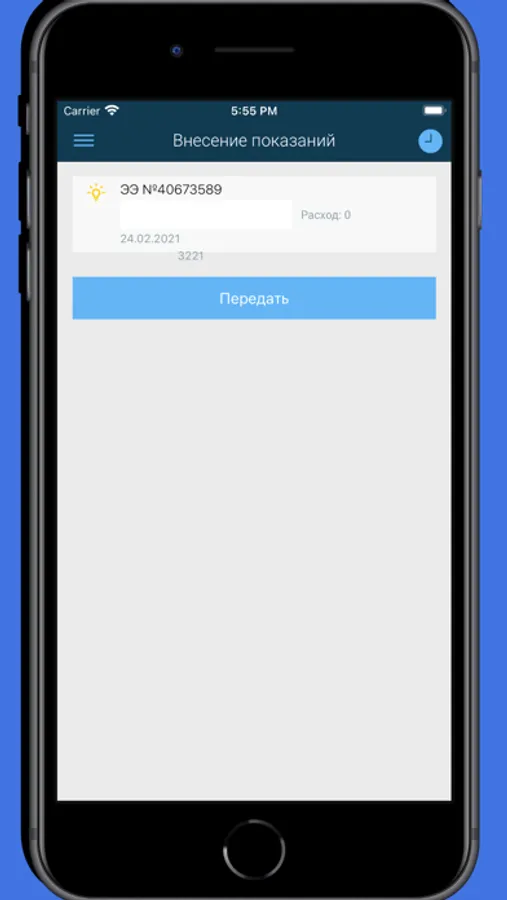 Возможность передачи показаний по счетчикам или просмотреть переданные ранее показания;