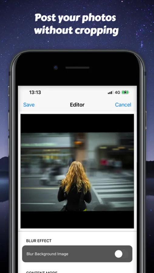 The NoCrop MyPhotos app provides you with the easiest way to adjust your photos, so you can post to your social networks without losing any part of the image, with size adjustment, blur, and beautiful backgrounds.