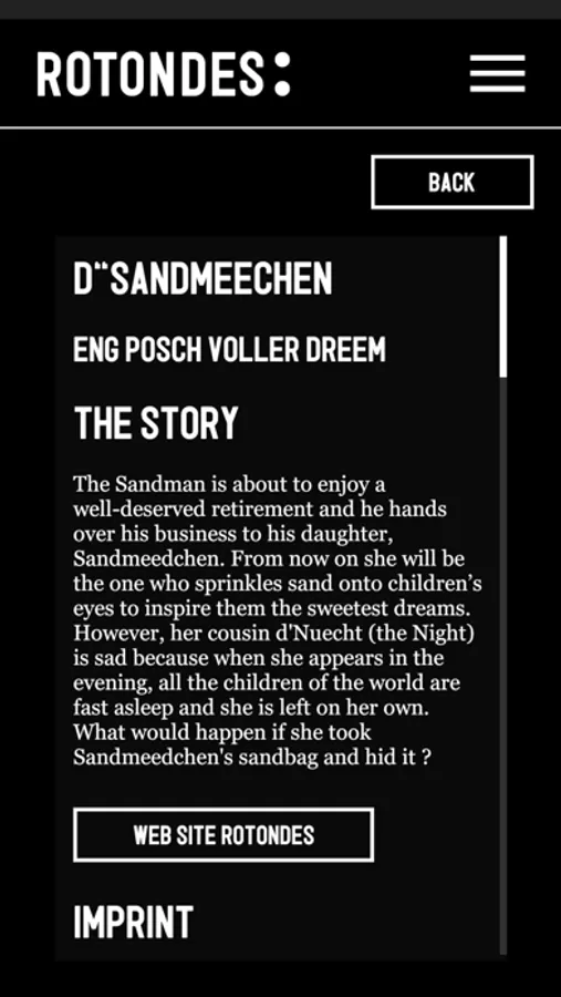Téléchargez l’application gratuite Rotondes AR pour votre smartphone ou votre tablette. Vous n’aurez plus qu’à scanner les pages du livre D’Sandmeedchen pour animer les illustrations.