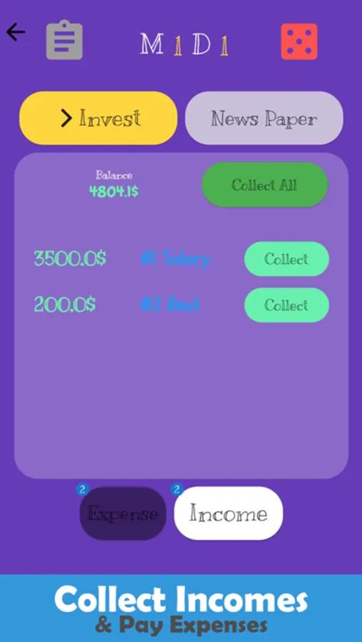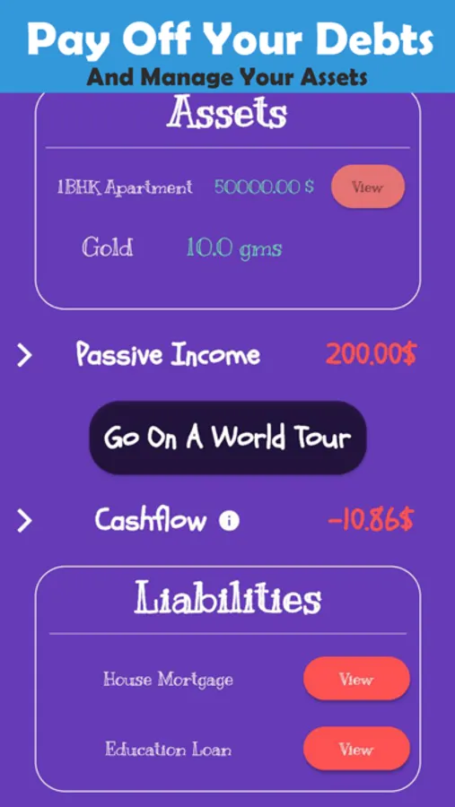This game allows you to simulate a RAT RACE where you will have loans to pay, bank to deposit and gain interests and much more investing options.