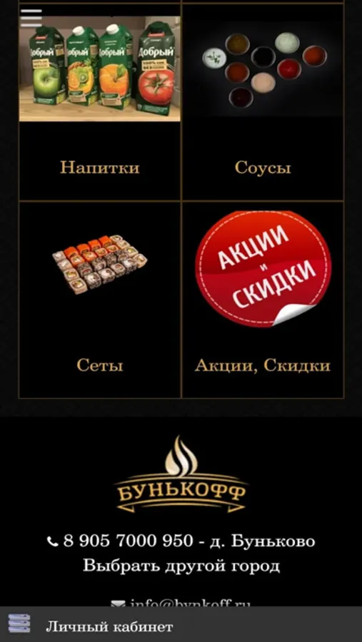 Приложение даёт возможность пользователя делать заказ в интернет магазине Бунькофф.рф. Ведётся история заказов с возможностью повторных заказов.