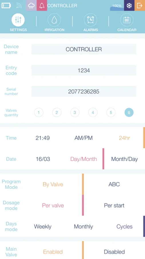 Gamla offers professional solution for gardening irrigation control, innovative styling, hardware and software new technology design, flexibility, extensions, professional features, user friendly device, reliability and high level technical support. Include: Network Settings for full irrigation area suitability. Two programs mode: Per valve or Per Programs (A, B and C). Four start time with unique water dosage, Daily, Weekly or Monthly cycle, Alarms list, Calendar irrigation presentation. Handle up to six irrigation valves. In addition, special output for Main valve. Three special inputs: Flow switch, Rain sensor and panic button. Low energy consumption.