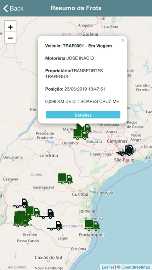 O aplicativo possui os seguintes recursos de forma integrada com a plataforma Trafegus Web/GR: