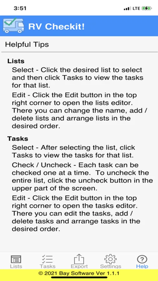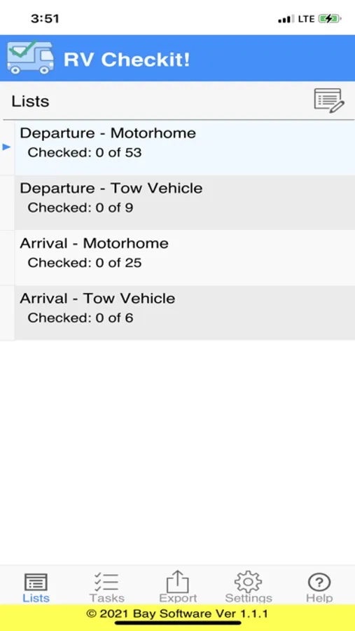 There are a lot of steps to getting things right when it comes to an RV. RV Checkit! is a great tool to help you with the process. It allows you to create your own unlimited Lists such as Departure and Arrival. With each lists you can create and organize the Tasks to be completed. You can be as detailed or general as you want in the Task descriptions.