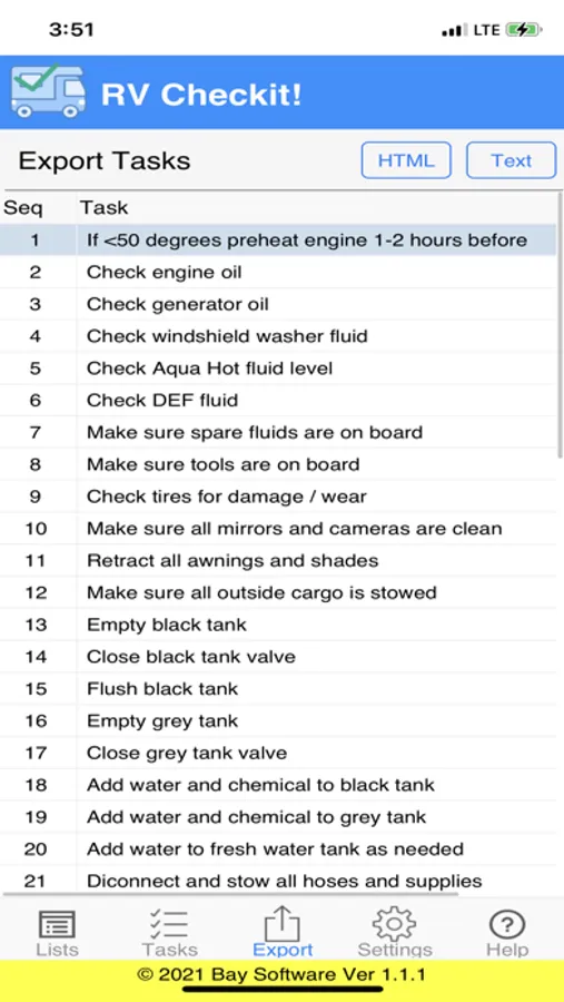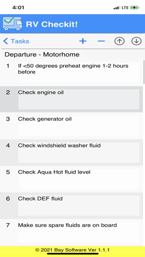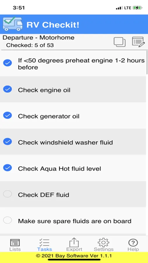 Then when you are ready to use RV Checkit! to get your tasks done, you simply check them off one by one as they are completed.