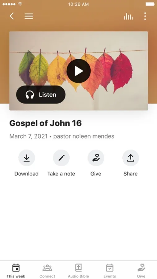 This app will help you stay connected with the day-to-day life of our church. With this app you can: watch or listen to past messages; stay up to date with push notifications; share your favorite messages via Twitter, Facebook, or email; and download messages for offline listening.