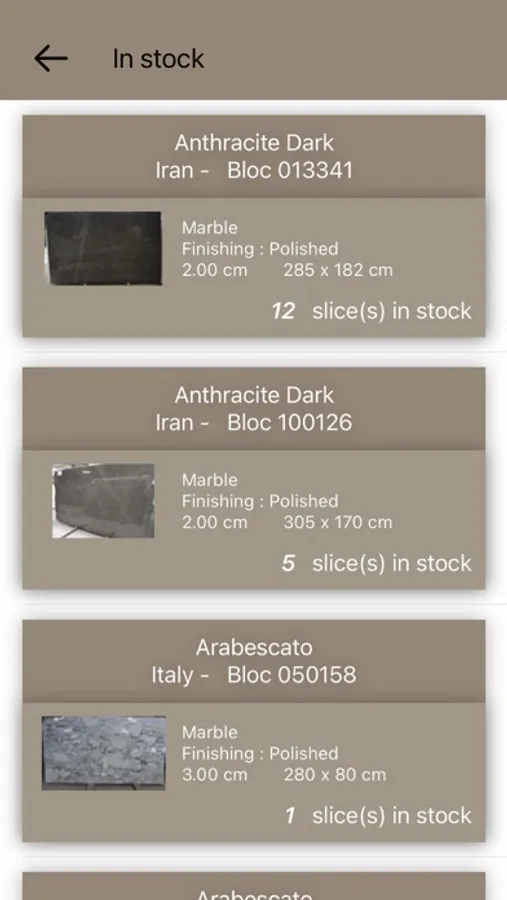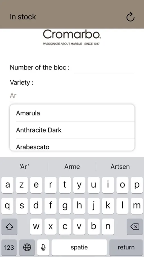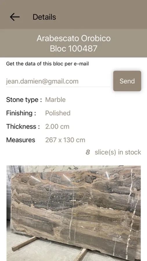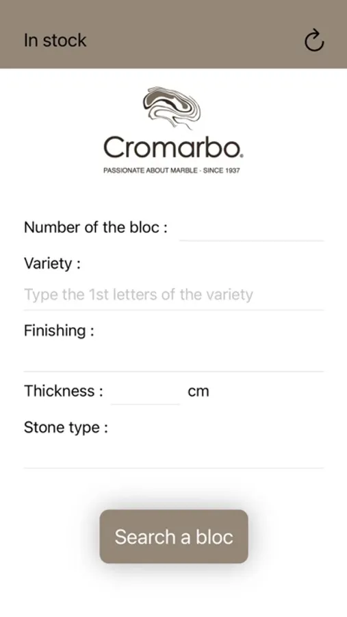 Cromarbo offers a wide range of natural stones, marbles, composites, ... The app allows you to see on-line the availability of the different products of Cromarbo, to look at photos of the selected products and to send you an e-mail with a description of the product