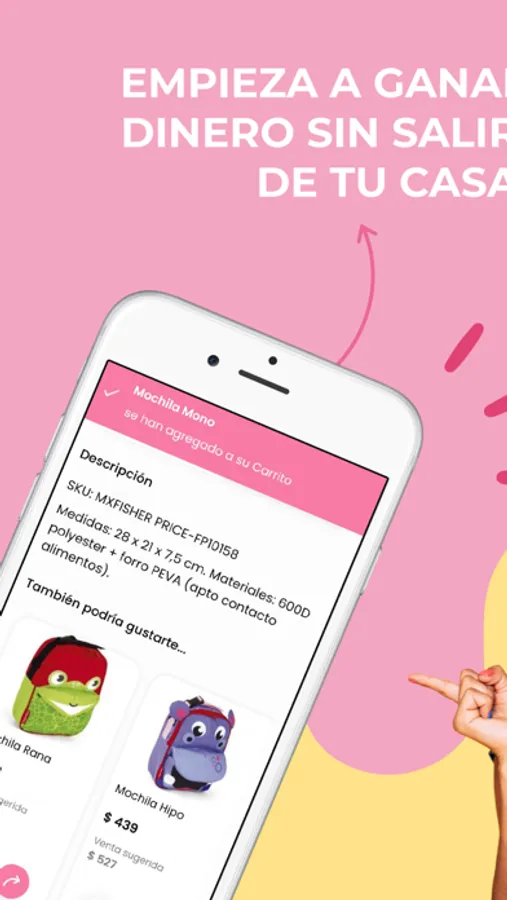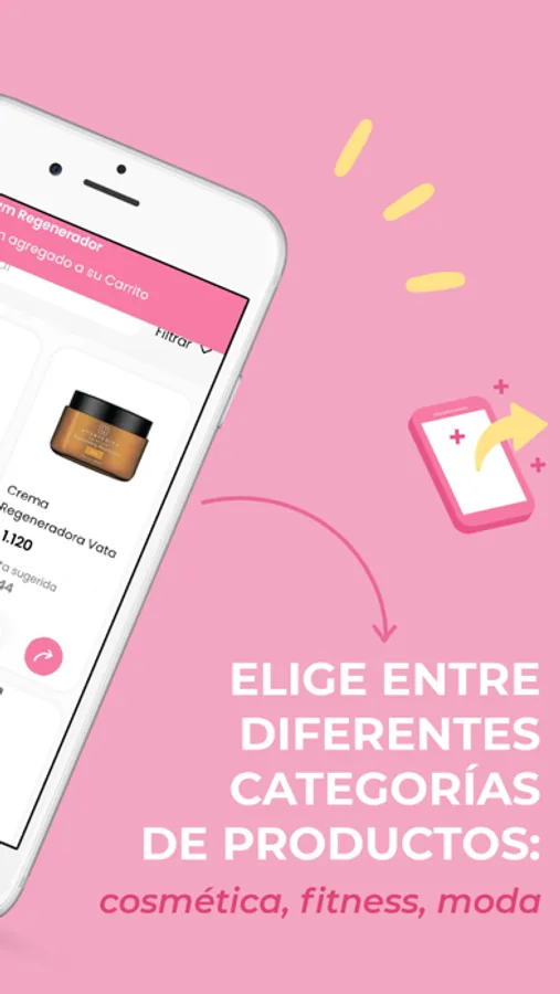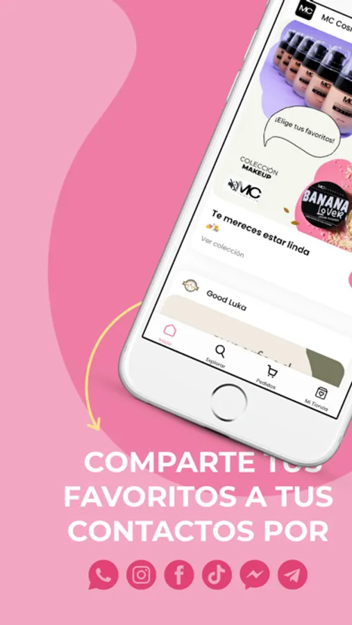 Eliges tus productos favoritos y los compartes a tus contactos por Whatsapp, Facebook, Instagram o TikTok. Una vez que recibas pedidos, gestionas tus compras desde el app y te las enviamos. Obtienes dinero por cada venta que realices. ¡Así de fácil!
