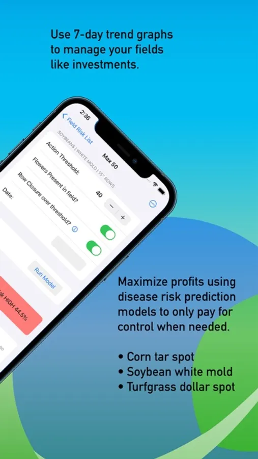 Outsmart plant disease! Field Prophet assists in making management decisions about current or impending disease infections in agronomic fields or in turf settings. Models used in the app predict the risk of plant diseases occurring by using statistical models coupled to weather information for your farm fields.