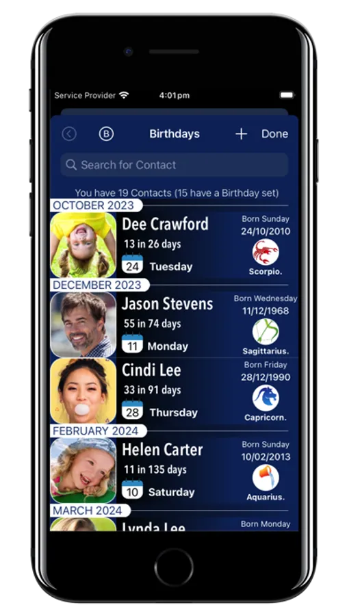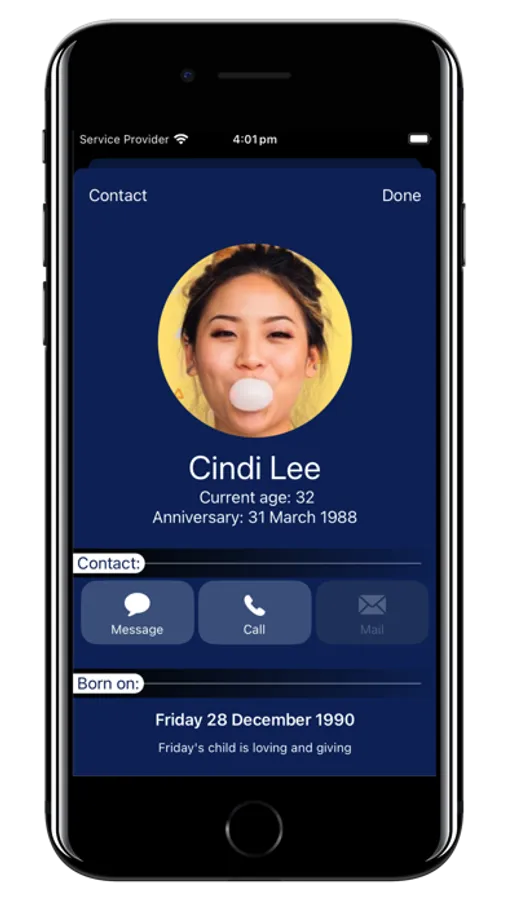 • Beautiful Birthdays view, with fun facts.