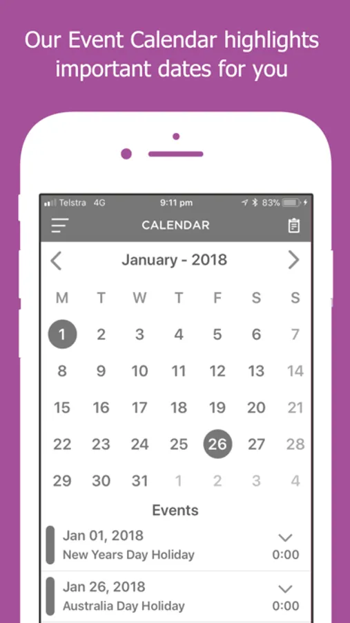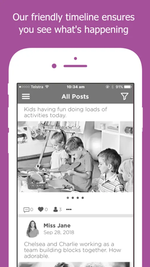 Get access to real-time data about your child including vital stats such as Food & Fluid Intake, Sleep Checks, Nappy Changes & other important information. Plus, parents receive photos, videos & updates throughout the day via social posting of their child learning and playing. You can also Book Casual Days, know what's happening with our Event Calendar and much much more.