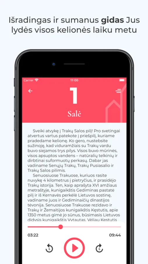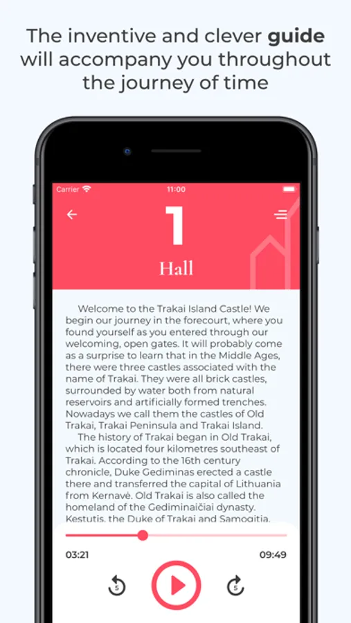 Pasinaudoję šia programėle Jūs sužinosite daugybę naujų ir įkvepiančių istorijų apie Lietuvos Didžiąją kunigaikštystę, Trakų miestą su pilimis, kuriose įsikūręs Trakų istorijos muziejus! Išradingas ir sumanus gidas Jus lydės visos kelionės laiku metu, nuspės klausimus, suteikdamas žinių bei dar labiau pažadins smalsumą, kviesdamas apsilankyti dar kartą.