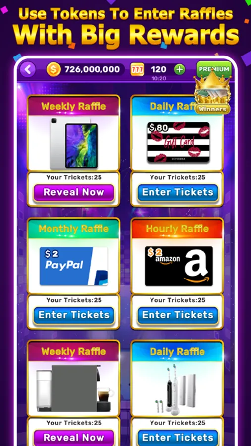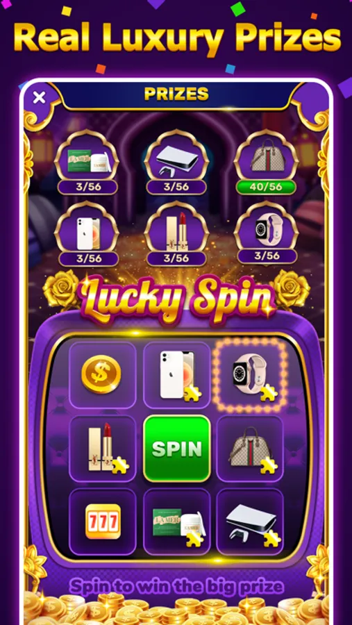 With a variety of cool themes and wonderful visual effects, you'll definitely get addicted. One simple spin, collect Tokens, participate in the lucky draw, and physical rewards are just around the corner. Don't hesitate; start your lucky journey today!
