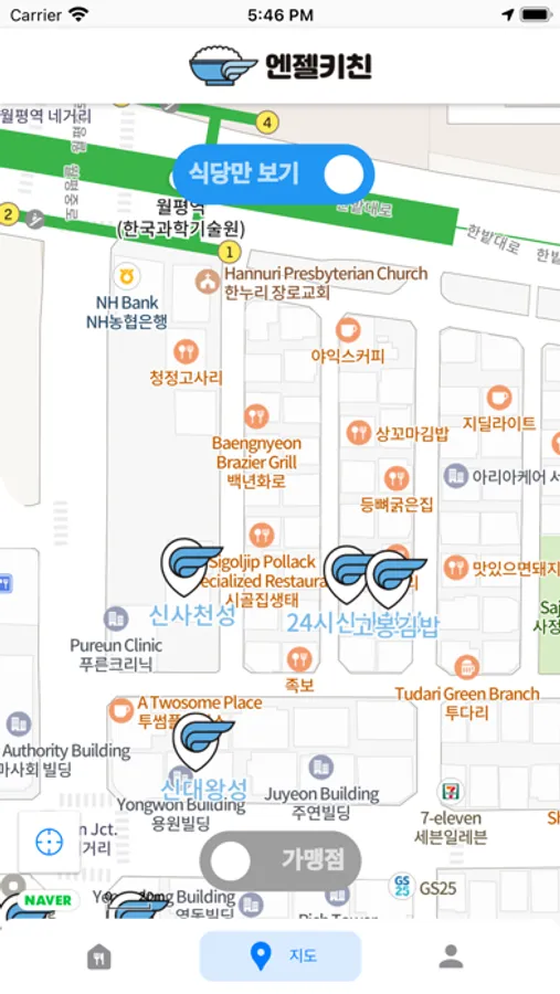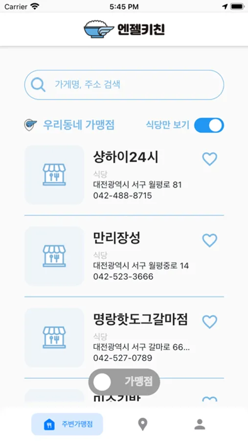 아동급식 카드와 제휴된 음식점과 착한 사장님들의 가게를 보여줍니다