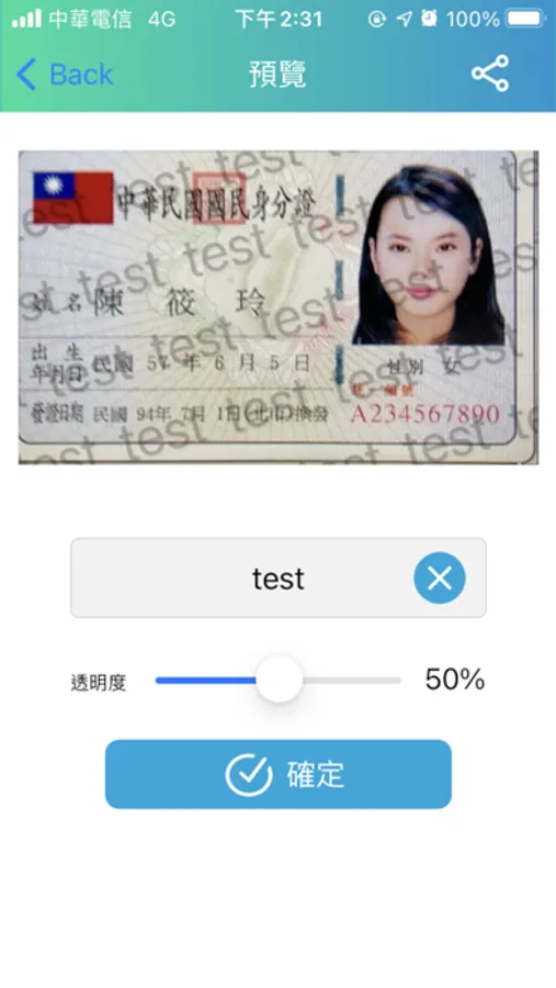 4. 可以將證件照分享到其他App。